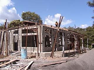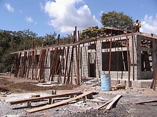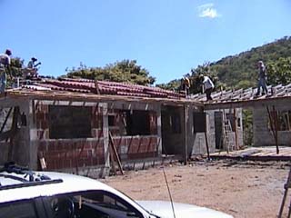 The house is progressing again after having to shutdown for a month. My manager proved incapable of doing the job so I had to fire everyone he had hired and start again with a new jobsite foreman and new workers. The provider of lumber (selected by the manager) was the worst of all and it was his incompetence which forced me to shutdown until I could get acceptable lumber. They don't have lumber yards around here so there was a month plus long delay while trees were found, bought, milled and delivered. The new foreman is quite good and now the house is progressing smoothly. We will be painting the overhangs and putting the roof on this week.