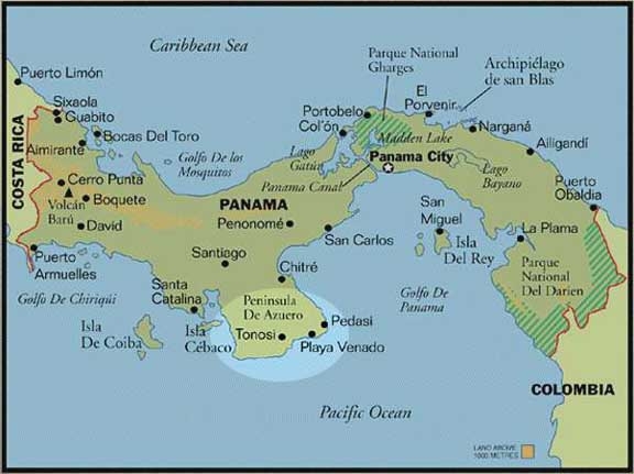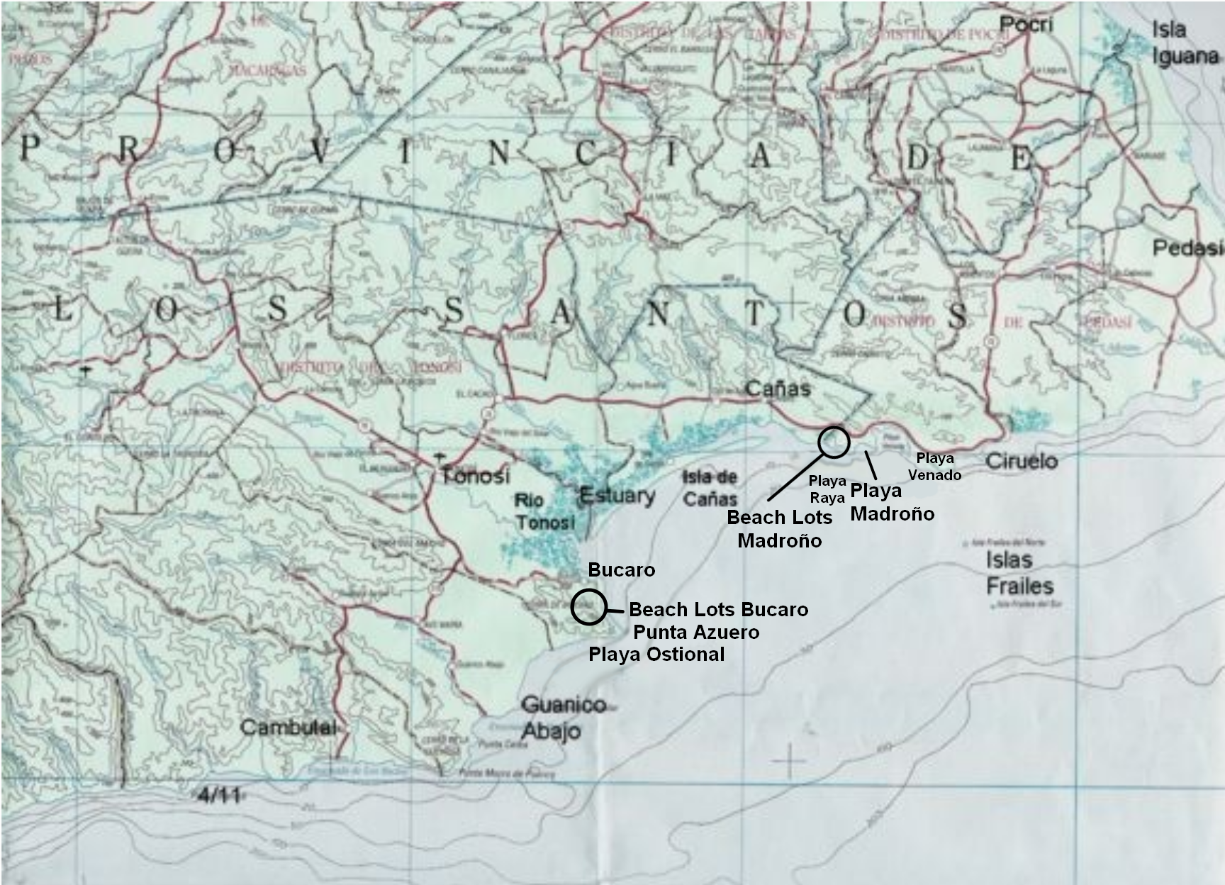 Map of Panama The area around Tonosí Madroño is between Playa Raya and Playa Venado. |